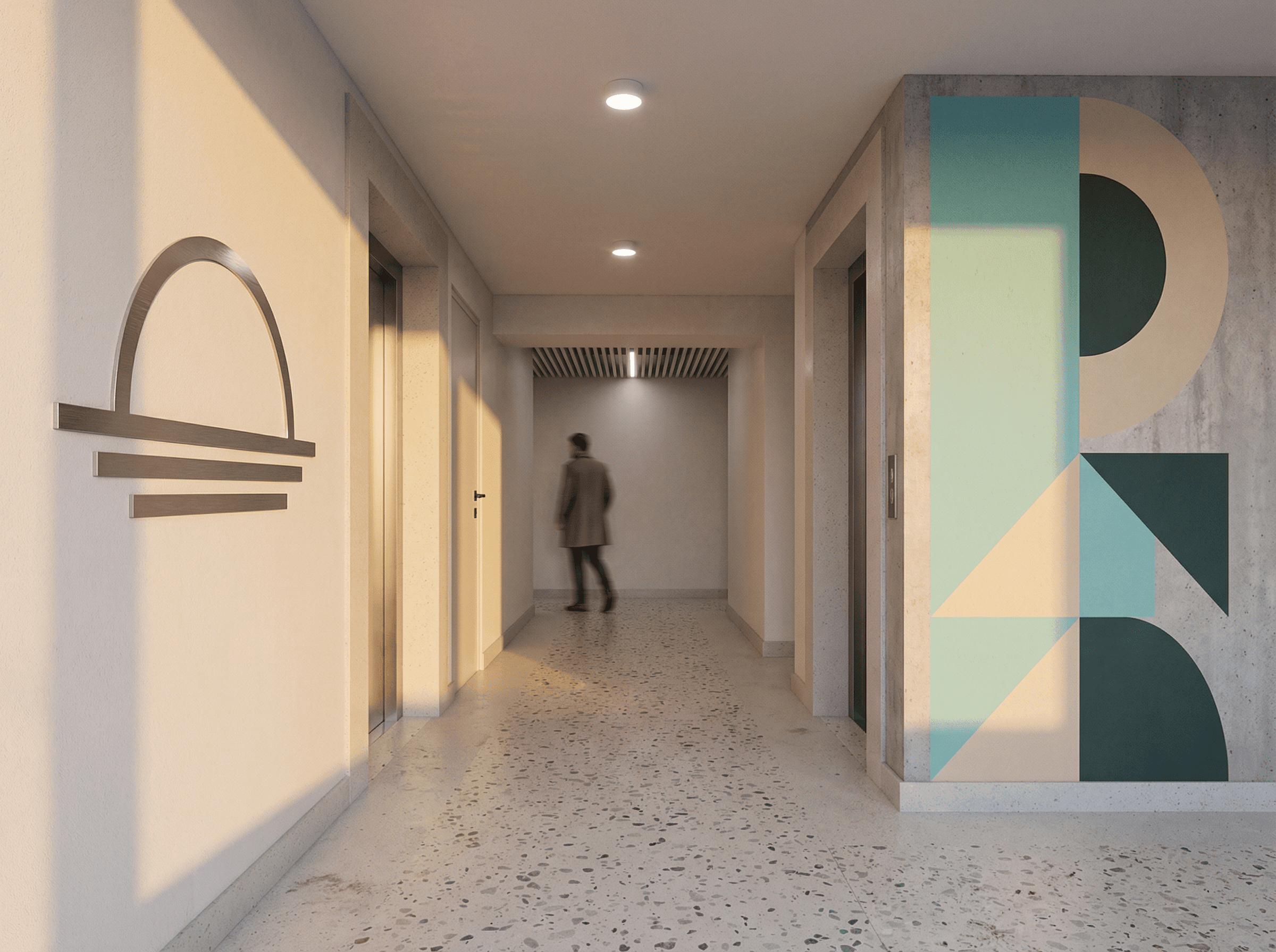 Cele trei linii evocă marea, în timp ce semicercul devine atât soare, cât și privire – o metaforă a deschiderii și perspectivei. Structura în patru linii reflectă cele patru blocuri ale ansamblului, într-un echilibru clar și intenționat.